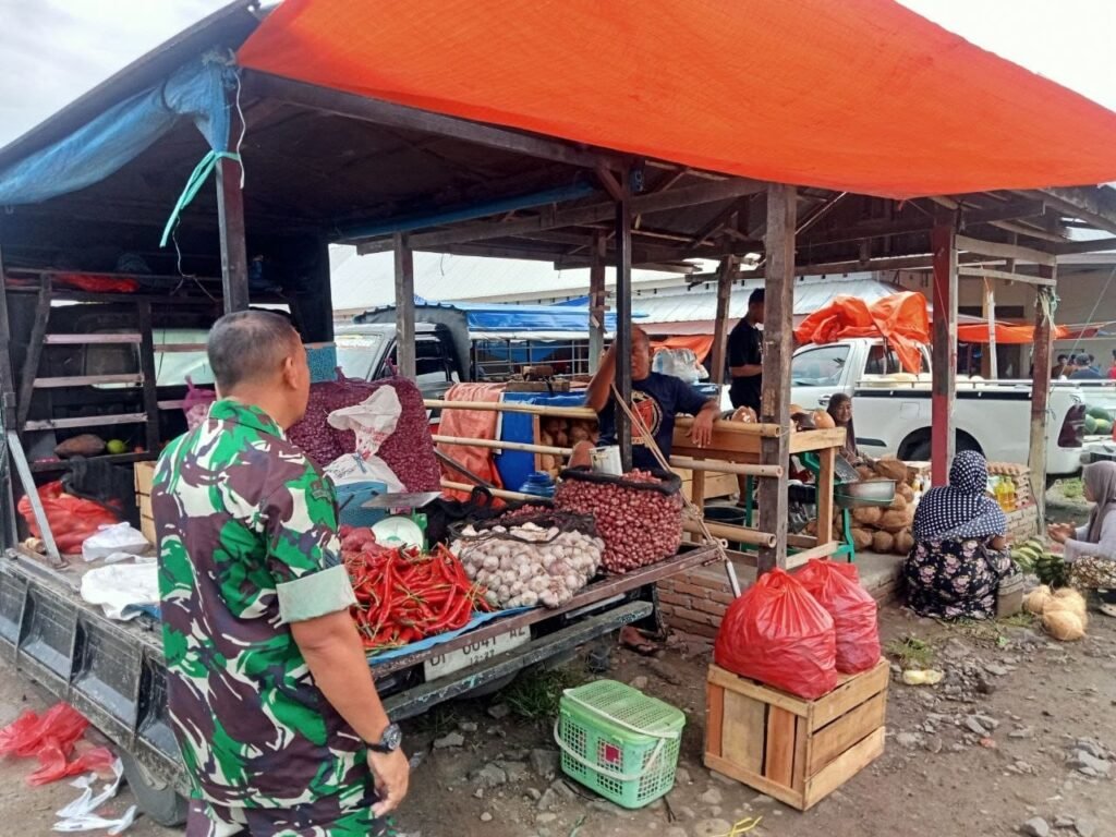 Pemantauan dan Pengecekan Harga Sembako di Pasar Sentral Rappang, Sidrap Oleh Babinsa