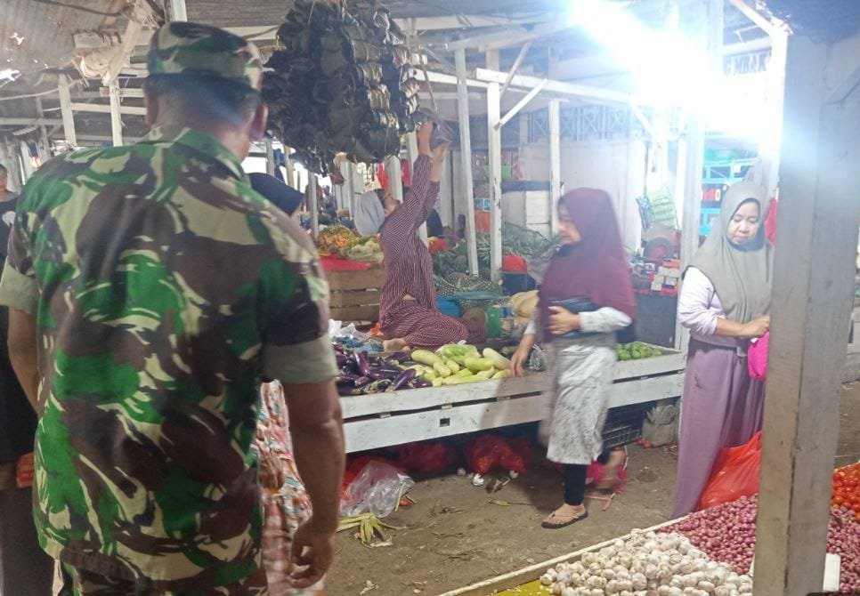 Kegiatan monitoring ini merupakan bagian dari tugas rutin aparat teritorial untuk mengawal stabilitas harga pangan di pasar tradisional. Sertu Bustan berinteraksi langsung dengan para pedagang untuk mengecek fluktuasi harga komoditas penting.