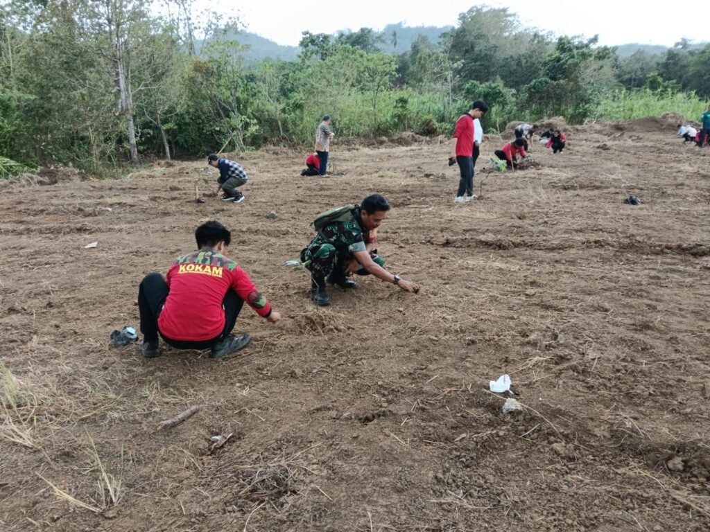 SIDRAP,Wartakasus.com – Semangat pelestarian lingkungan dan penguatan ketahanan pangan lokal ditunjukkan oleh aparat teritorial bersama elemen masyarakat di Kabupaten Sidrap. Babinsa Desa Lombo Koramil 1420-05/Dua Pitue, Sertu Andi Paris, bersinergi dengan anggota Komando Kesiapsiagaan Angkatan Muda Muhammadiyah (Kokam) Kabupaten Sidrap dan warga setempat melakukan aksi penanaman pohon, Rabu (11/02/2026).
